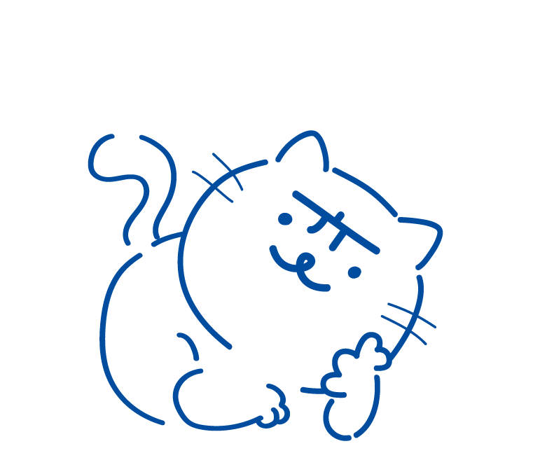 長崎の尾曲り猫。背景のブルーと文字・図案の白の美しさは 長崎の青い空と白い雲をイメージさせます