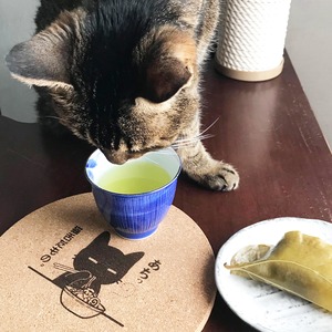 大きなコルク製プレート(直径19センチ x 厚さ 約9ミリ )の両面に、猫図案をレーザー彫刻したものです