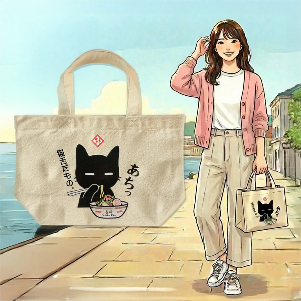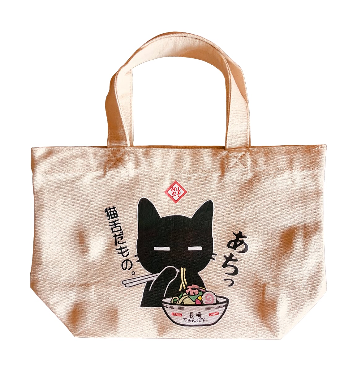 2026 新作 ランチバッグ(舟形) 猫舌だもの。長崎チャンポンを食べる黒猫 約W30xH20xD10cm(センチ)